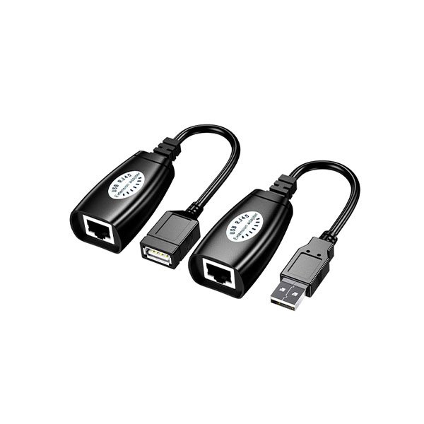 Adaptador de extensión USB a través de cable RJ45 Cat5/Cat5e/Cat6, permite extender hasta 150 pies de longitud para conectar impresoras y otros dispositivos USB de manera conveniente y eficiente.